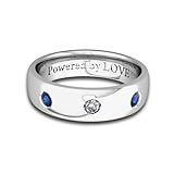 Mens Three Stone Natural Sapphire and Diamond Wedding Band in 14k White Gold - 6MM, Powered by LOVE. This sapphire and diamond wedding ring is crafted in 14k white gold with two round cut natural blue sapphires and one round brilliant cut diamond. This classic 3 stone ring design makes this ring a perfect choice for wedding rings, anniversary rings, or mens engagement rings. This wedding band features a comfort fit; its smooth edges provide extra comfort to wearers.